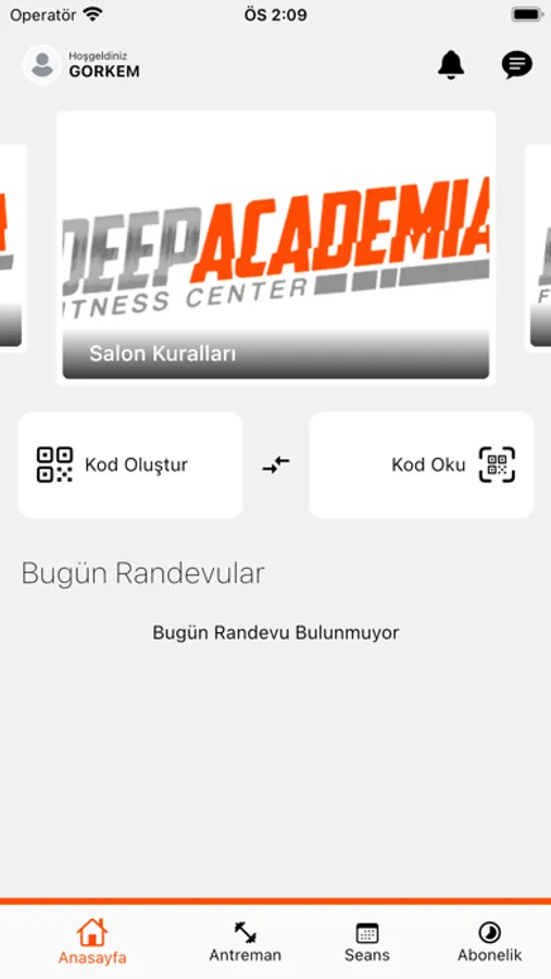 Deepacademia Fitness Salonu aboneleri mobil uygulamaları sayesinde aşağıdaki işlemleri yapabilir.
