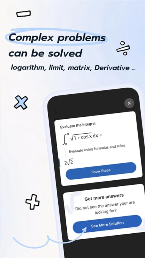 - Get detailed step-by-step solutions for solving math problems to deepen your understanding of math problems, and help you deeply understand where you are wrong in order to improve math performance.