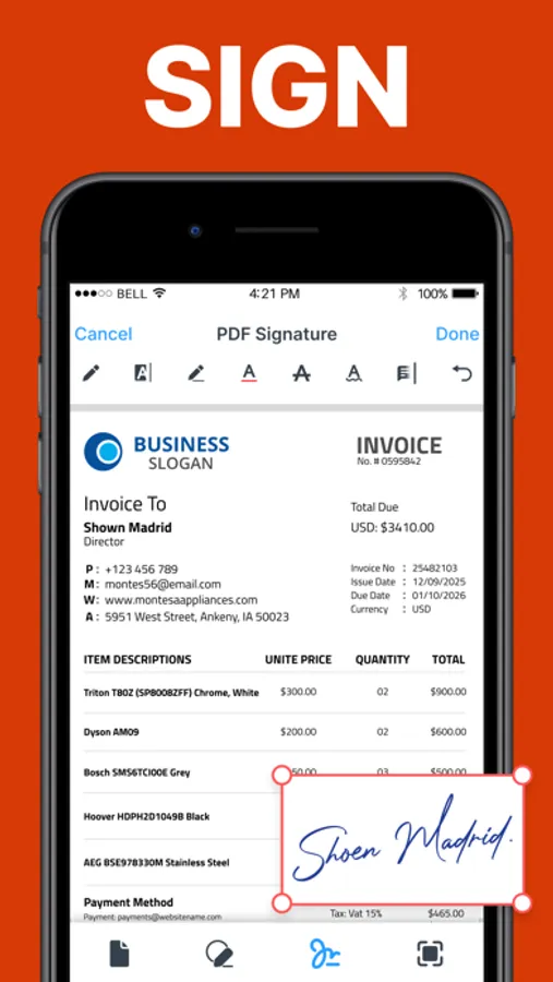 • Sharing Options: The app allows users to easily share documents with others via email, text message, or social media.