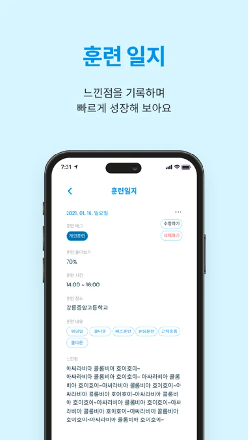 선수들이 자신의 훈련 데이터를 객관적으로 분석하고 판단해 실력 증진 및 부상 방지를 하기 위한 목적을 지닙니다.