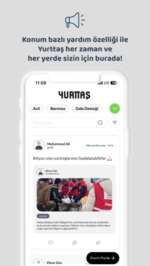 Diffancy Yazılım ve Teknoloji A.Ş. tarafından sosyal sorumluluk projesi olarak geliştirilen Yurttaş uygulaması; kullanıcıların bulundukları yerin yakınında bulunan diğer kullanıcıların paylaştığı duyuruları görmesini sağlar. Böylece, kullanıcılar konum bazlı duyuru paylaşımı yaparak yardıma ihtiyaç duyduklarında diğer kullanıcıların kendilerine kolay ulaşmasını sağlayabilirler.