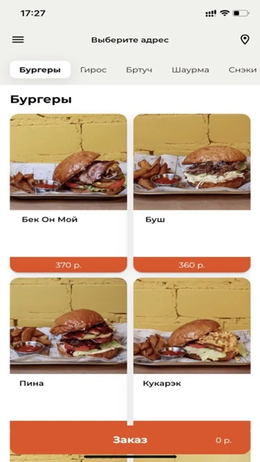 Мобильное приложение бургерной "ОН МОЙ!"! Здесь мы можете заказать ваши любимые блюда на доставку, либо самовывоз.