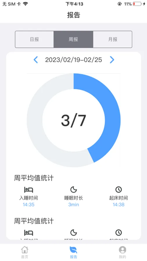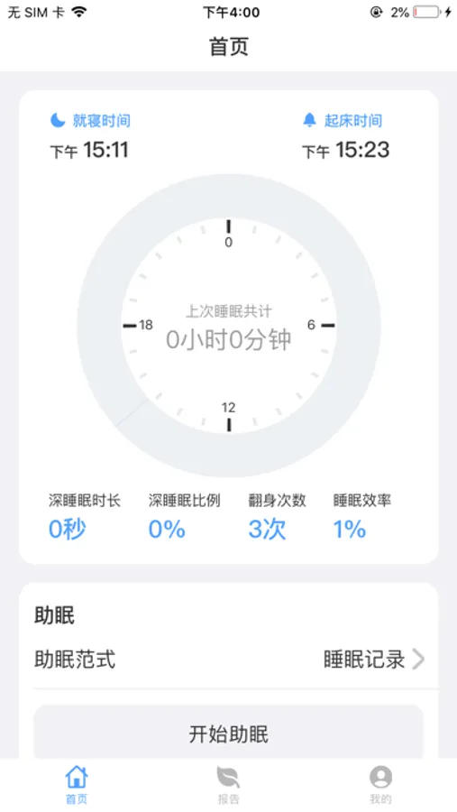 采用蓝牙连接设备,记录睡眠状态,生成睡眠报告