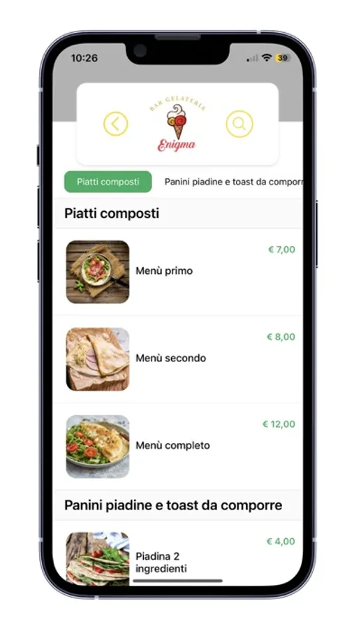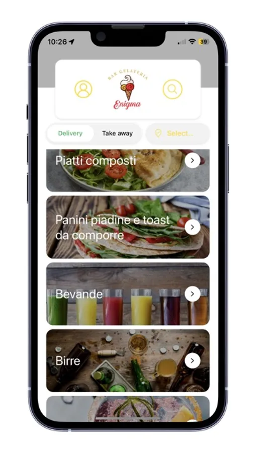 Effettua un ordine in delivery o take away direttamente dalla nostra nuovissima applicazione di Bar Gelateria Enigma