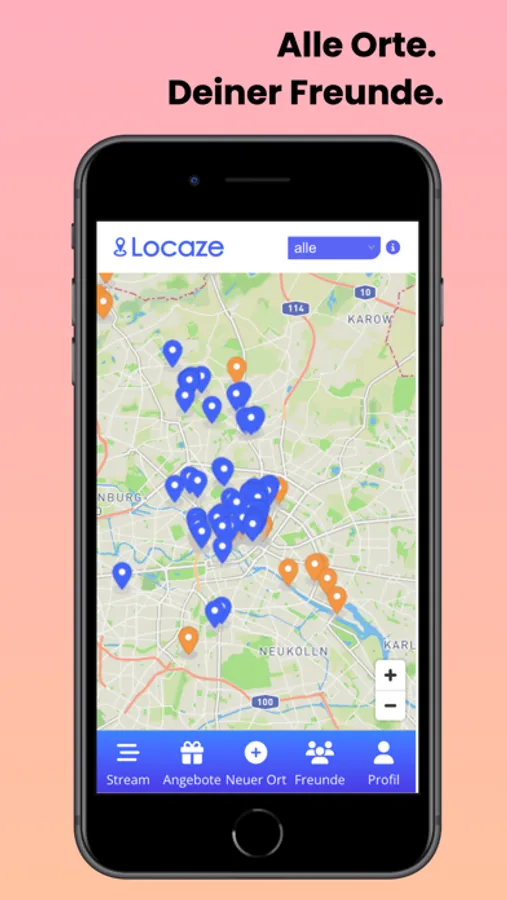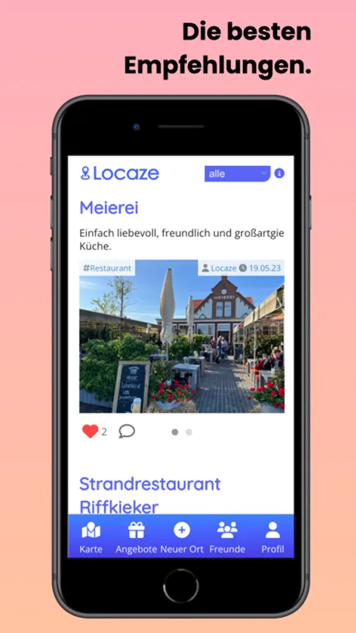 Mit Locaze sammeln wir gemeinsam die Restaurants, Cars, Cafés, die wir mögen. In unserer Stadt, in unserem Distrikt. Ähnlich wie bei Instagram: Einfach Foto machen, Ort auf der Karte markieren, Hashtags benutzen, fertig. Connecte Dich mit Deinen Freunden. Und finde alle Eure Orte übersichtlich nach Hashtag sortiert auf einer Karte.