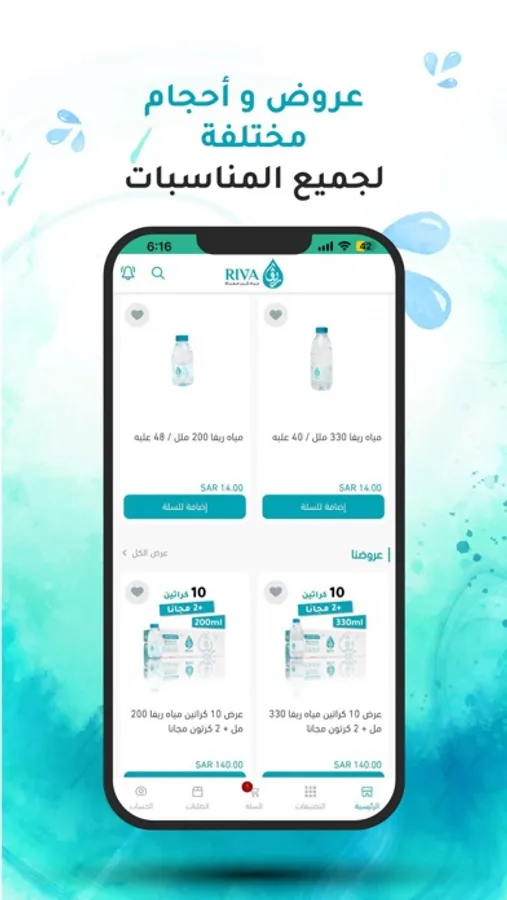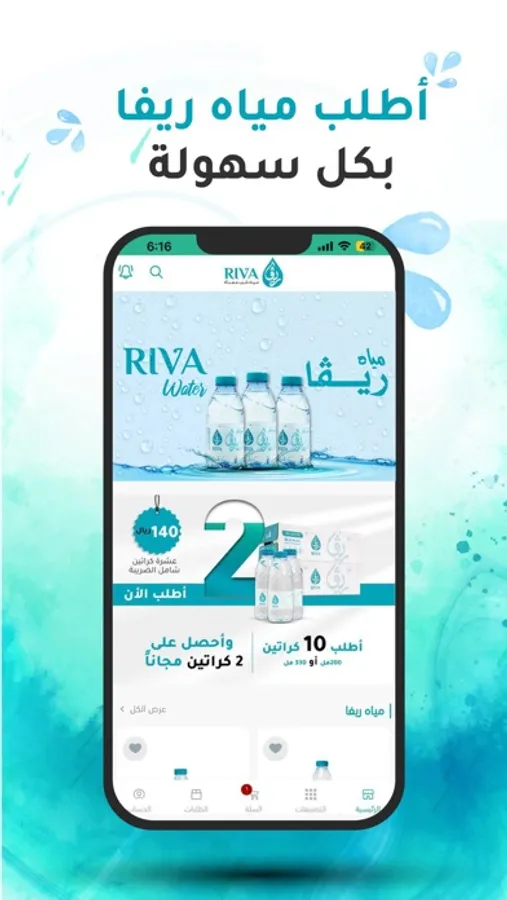 حمل تطبيق مياه ريفا واستعرض منتجات مياه ريفا و العروض الخاصة لك ، تصلك حتى باب المنزل او حتى المكتب في أقصر مدة ممكنة . الأحجام المتوفرة في التطبيق تخضع للتوفر حسب المنطقة و شروط الانتاج.