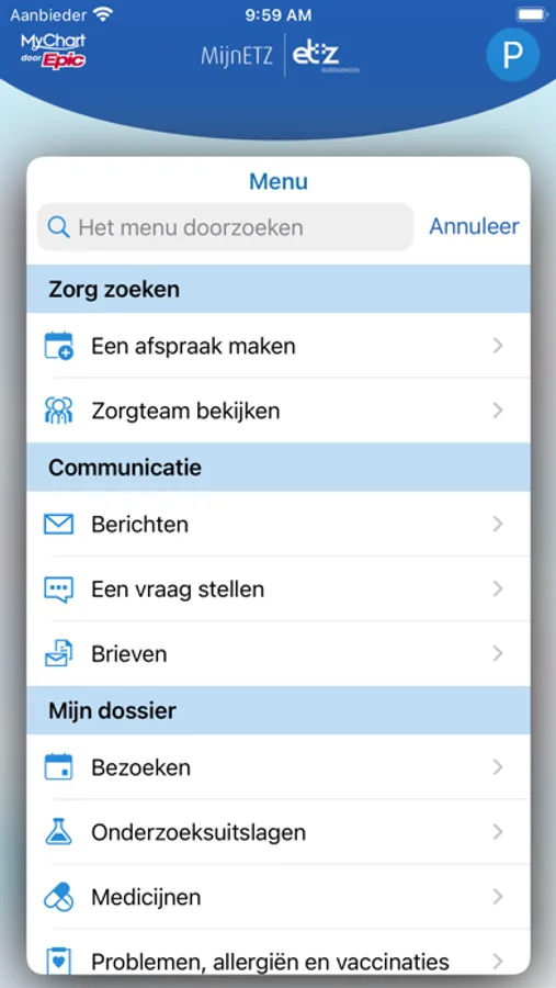 • Uw videoafspraken of polikliniekafspraken beheren en voorbereiden