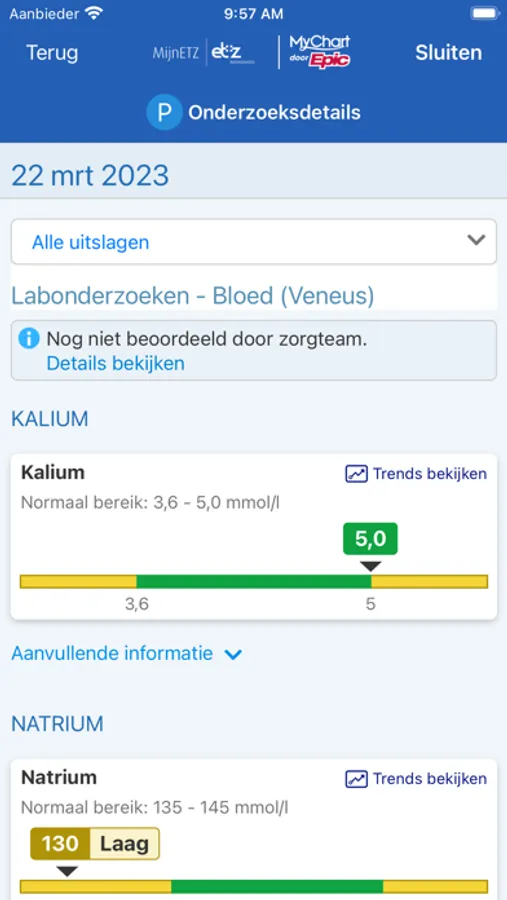 • Afgeronden polikliniekafspraken en ziekenhuisopnames bekijken