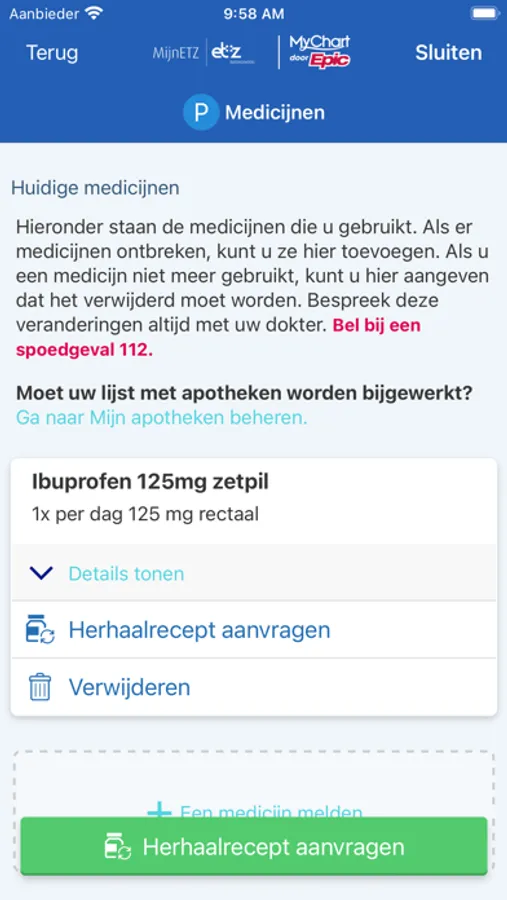 • Uw medische gegevens, waaronder medicijen en onderzoeksuitslagen bekijken