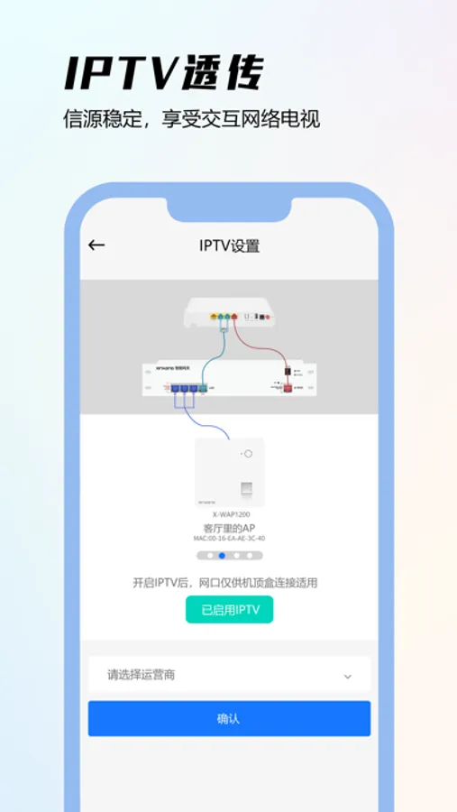 IPTV设置功能可以让您在没有多余网口情况下,更容易的观看IPTV,还能适配不同的运营商IPTV。