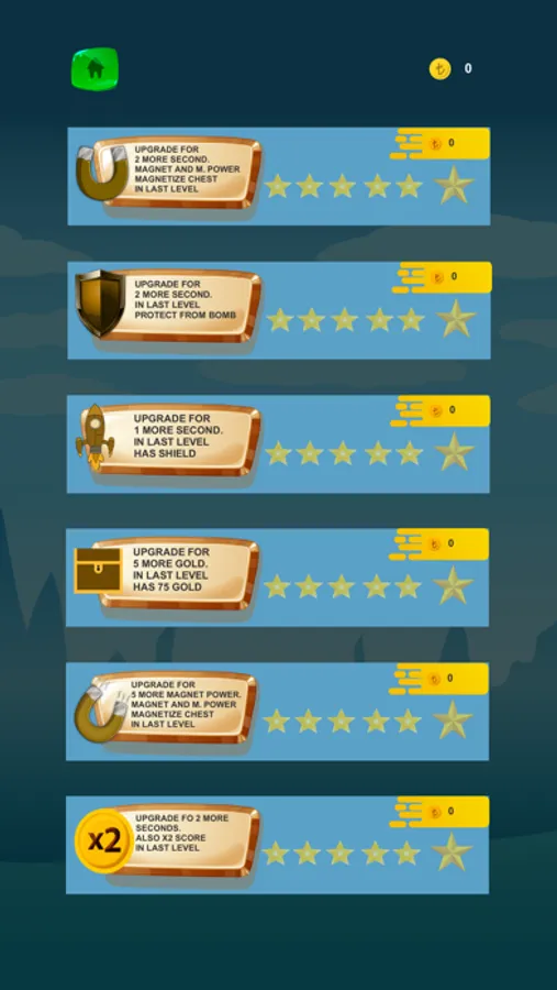- Magnet Power: The magnet has a gravitational force. The higher you raise, the faster you pull the gold. With magnet to the last level. When you arrive you will start pulling the chests!