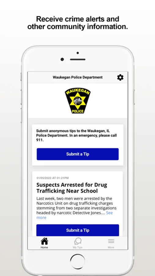 The Waukegan PD app provides citizens the ability to submit anonymous tips to the Waukegan, IL Police Department. The app also displays agency crime alerts and other organization web and social media content.