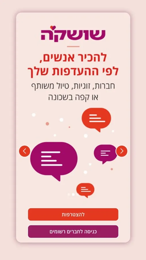 האפליקציה שלנו מיועדת לבני 60 פלוס. בשושק'ה תוכלו ליצור פרופיל מזמין ועשיר שיאפשר לכם לפגוש את האנשים המתאימים לכם ביותר, לפי רשימת מאפיינים מגוונת וקלה לעדכון.