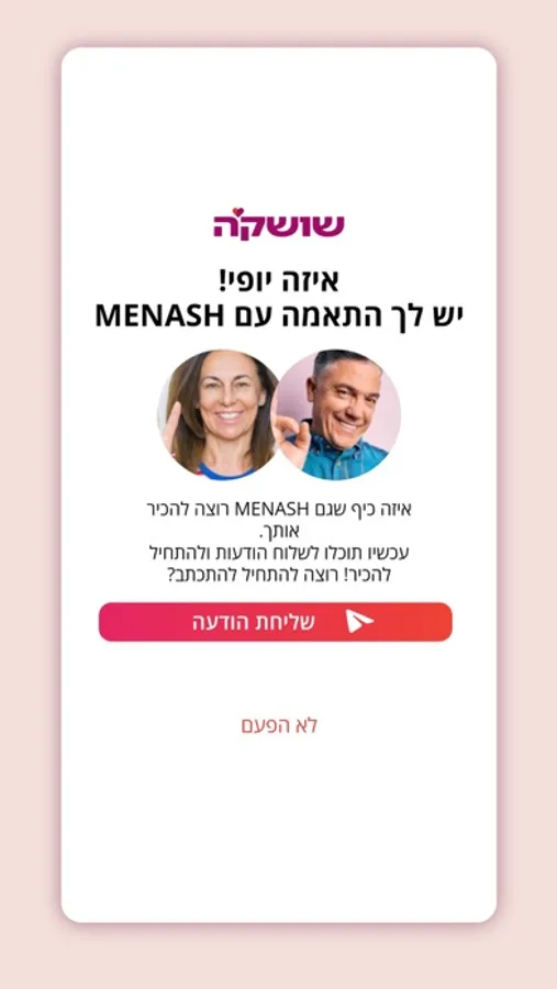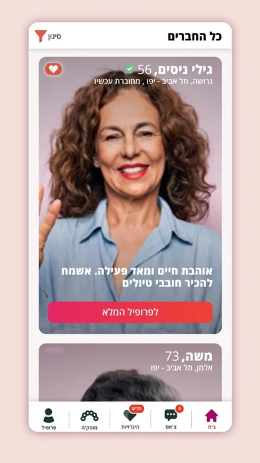 הכירו את שושק'ה, אפליקציית היכרויות מבית מוטק'ה לבני 60 עד 120, המאפשרת יצירת קשרים בקלות, לא רק רק למטרות רומנטיות, אלא גם למציאת שותפים לפעילויות מהנות.