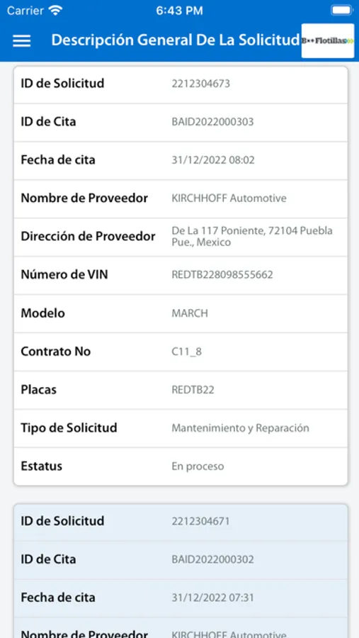 • Request the services in fleet management contracted to your vehicle through our Mobile App