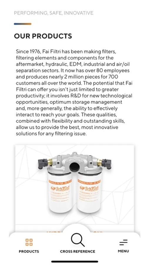Cross Reference is Fai Filtri’s app dedicated to the automated search for all the products made by the leading Italian company in quality filtration.