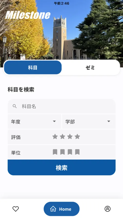 ・科目の内容や、単位について学部や評価、フリーワード検索などによって検索することができます。