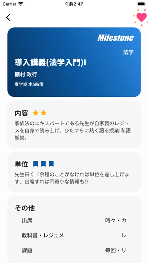・科目の内容や、単位について、その内容を閲覧することができます。