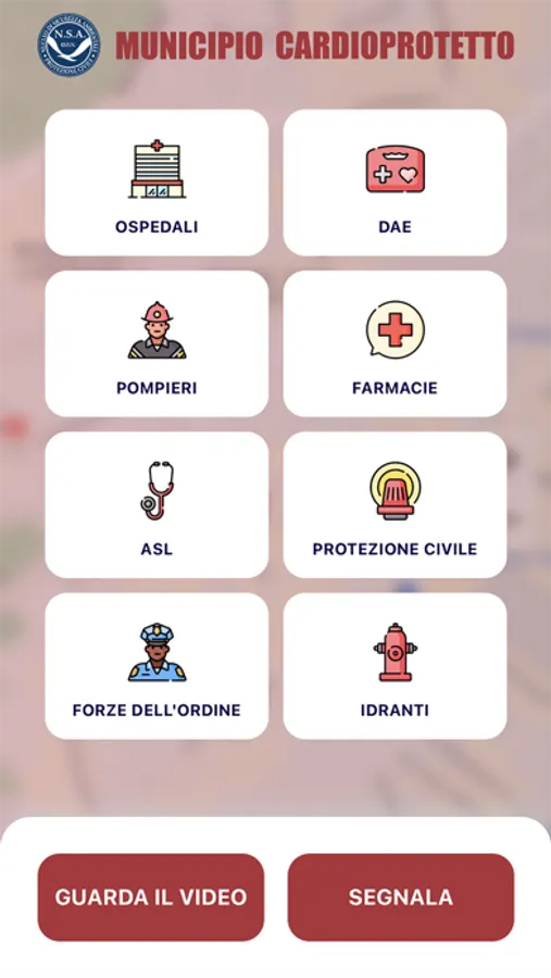 L’applicazione consente di localizzare i servizi emergenziali attraverso l’interazione con una mappa virtuale. Sulla schermata principale figurano 10 tasti digitali, ognuno dei quali corrispondente al servizio desiderato (ospedali, DAE, farmacie, ecc...). Due di essi si riferiscono, rispettivamente, al servizio “Segnala” o “Guarda video”. Selezionando un servizio si attiva la mappa degli indirizzi di categoria in cui appaiono le icone corrispondenti a quel servizio, cliccando su una delle quali emergono le informazioni dettagliate dell’elemento prescelto (foto, indirizzo, luogo, contatti, orario). Da quest’ultima schermata sarà possibile ottenere le indicazioni stradali per raggiungere la posizione del servizio desiderato. Infine, l’utente avrà la possibilità di individuare e accedere rapidamente al servizio prescelto.