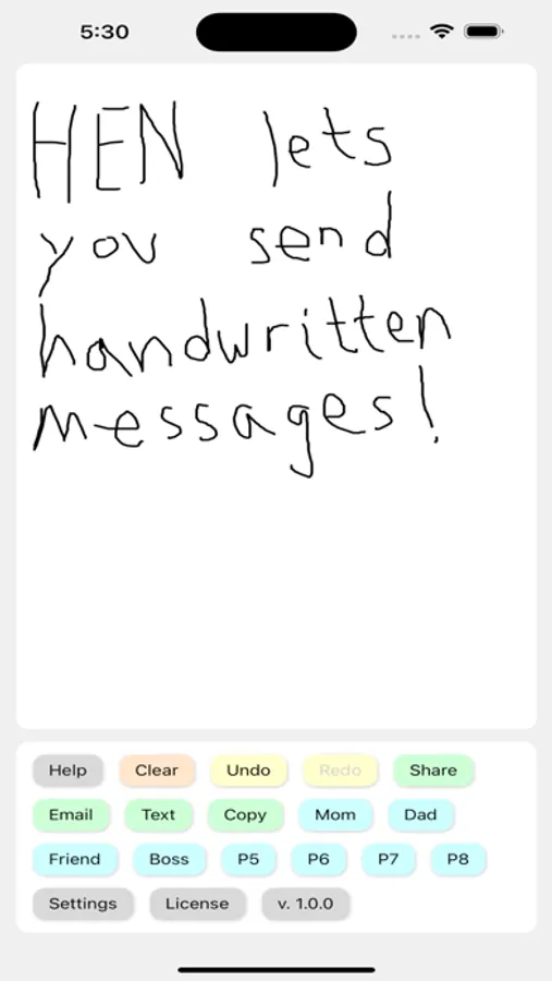 (HEN handles capturing your handwritten or drawn input; it relies on other apps on your device to actually send your emails and text messages.)