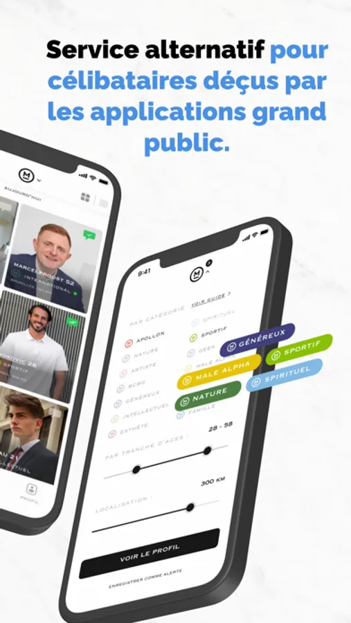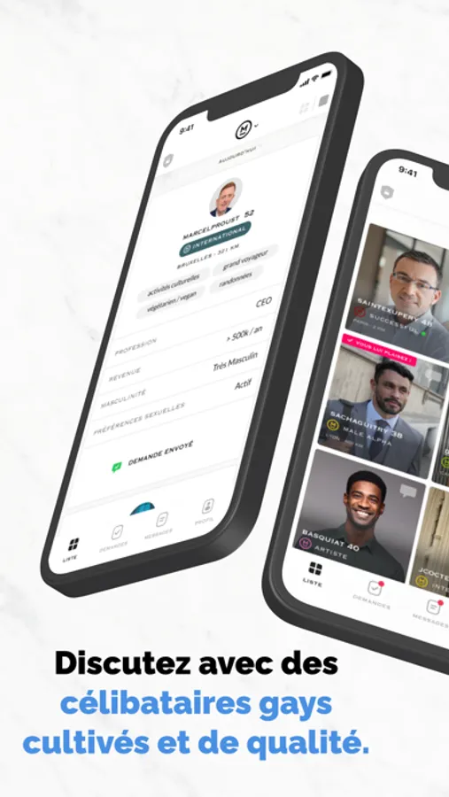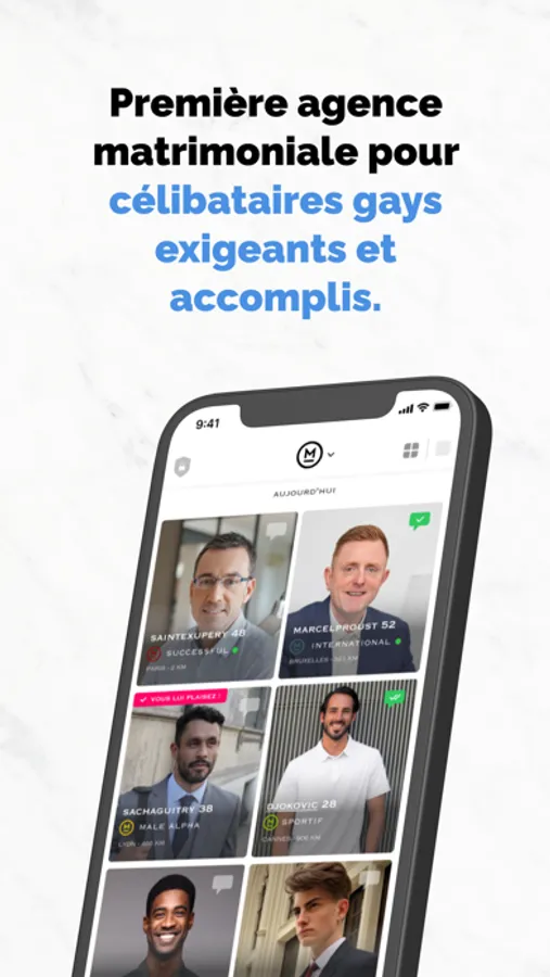 Maison Matrimoniale est une agence gay et confidentielle pour hommes exigeants et accomplis qui ne se retrouvent pas dans les applications gays grand public. Le service permet également d'échanger avec les membres du club privé Le Cercle de Socrate. La culture, l'art, l'histoire, la beauté, les questions de politique et de société font partie des centres d'intérêts que l'on retrouve régulièrement chez chacun de nos membres. Merci de télécharger cette application uniquement si vous êtes célibataire et à la recherche d'une relation sérieuse et durable.