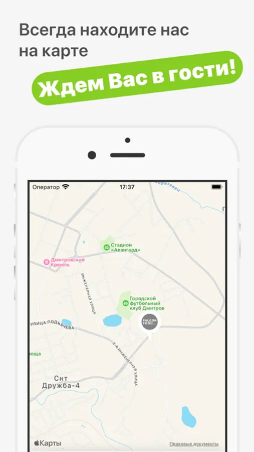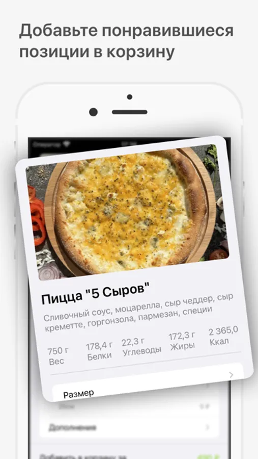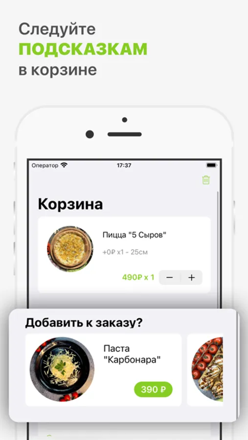 Как сделать заказ в приложении “Falcon food”: выберите понравившиеся позиции из меню, добавьте их в корзину и перейдите на экран оформления заказа (по нажатию на иконку корзины).