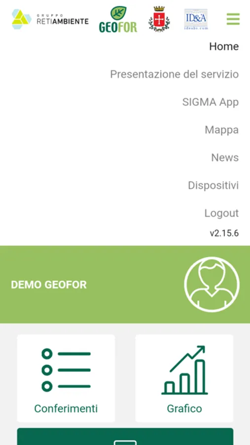 l’utente può controllare il proprio conferimento dei rifiuti. L’elenco dati è filtrabile per tipologia di materiale (vetro e organico) e per periodo (ultimi 30 giorni, ultimi 60 giorni, dall’inizio anno…)