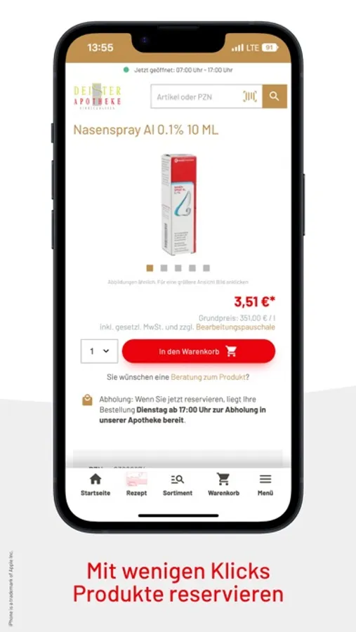 Wir bieten Ihnen über die App unser gesamtes Sortiment. Nicht sofort verfügbare Produkte bestellen wir für Sie und machen Sie in der Regel bis zum nächsten Werktag abholbereit. Gerne liefern wir Ihnen Ihre Bestellung per Botendienst direkt nach Hause.