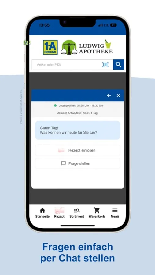 Wir bieten Ihnen über die App unser gesamtes Sortiment. Nicht sofort verfügbare Produkte bestellen wir für Sie und machen Sie in der Regel bis zum nächsten Werktag abholbereit. Gerne liefern wir Ihnen Ihre Bestellung per Botendienst direkt nach Hause.