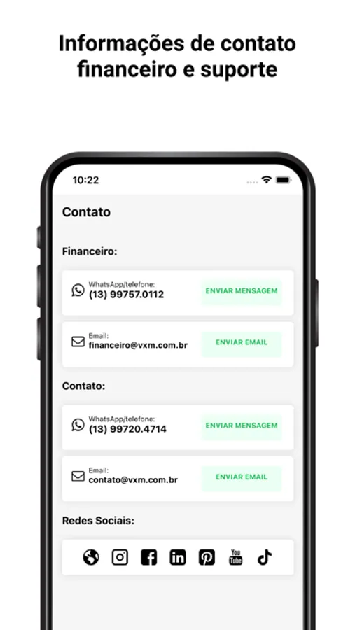 O aplicativo da VXM Tecnologia permite aos clientes acessarem de maneira rápida e fácil as mensalidades em aberto e ter um histórico do que já foi pago. Além dos principais contatos de forma prática e rápida.