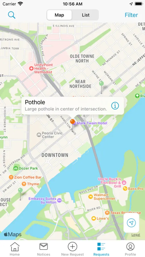 Peoria Cares is a free, easy, and convenient way of connecting with the City of Peoria! Through this app, you can report non-emergency service requests (ex. overnight parking, streetlight outages, and tree concerns). You can also share the exact location of the issue and upload a photo, then receive progress updates on your request. Download the app today to get started!