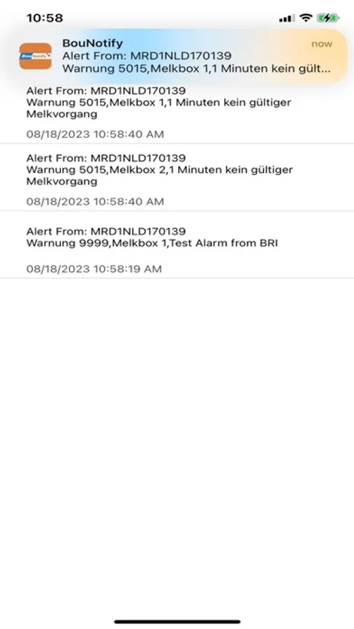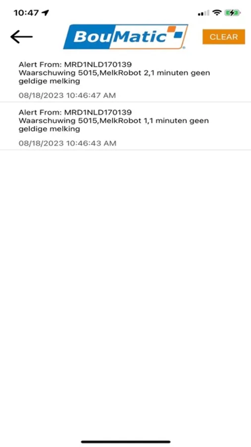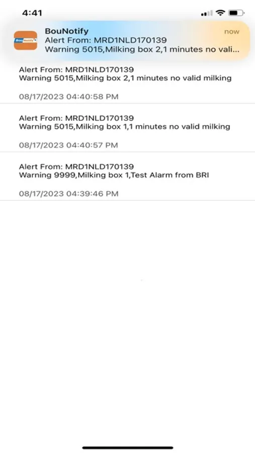 This App can send notification to the farmer of Robotic dairy farm if there is any failure or any alarm from Robot end.