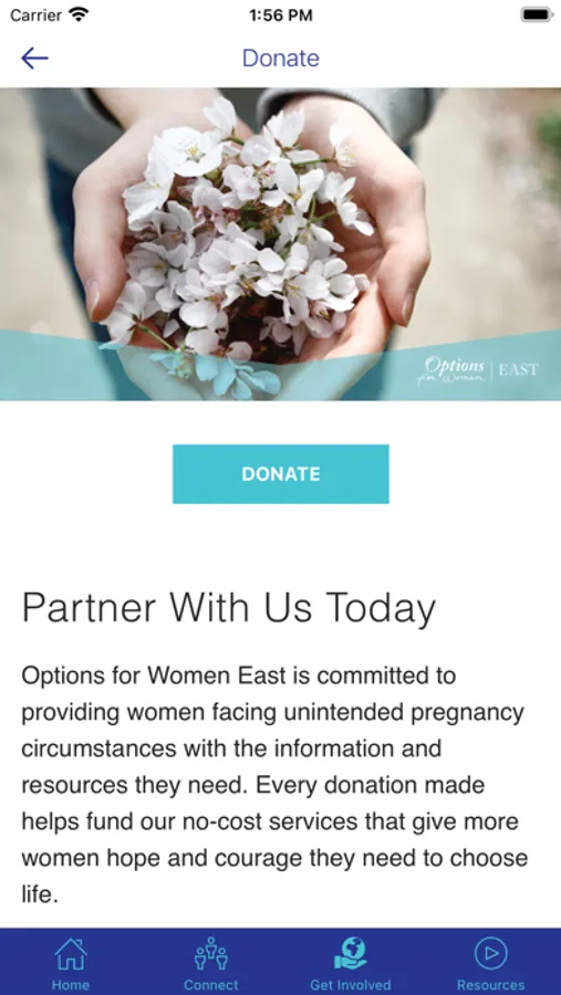 Connect and engage with the Options for Women East app! You will be able to view upcoming events, give, access to resources, and more!