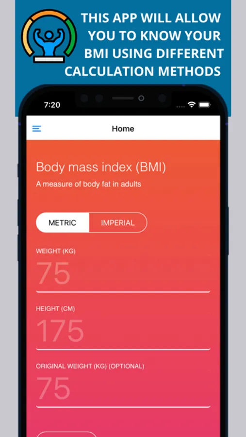 The BMI Calculator & Weight Loss app is an application designed to help users calculate their Body Mass Index (BMI), which is a measure of body fat based on a person's height and weight. The application typically prompts the user to enter their height and weight, and then uses a mathematical formula to calculate their BMI. The user is then presented with their BMI score and may be given additional information on what the score means, such as whether it falls into the underweight, healthy weight, overweight, or obese range. In BMI Calculator & Weight Loss you will find also offer additional features, such as tracking BMI over time or providing advice on how to maintain a healthy weight by doing some good physical exercises in your gym routine.