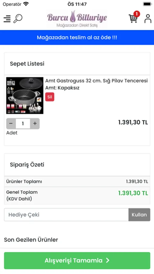 Burcu Billuriye uygulamasıyla ürünleri inceleyebilir ve satın alabilirsiniz.