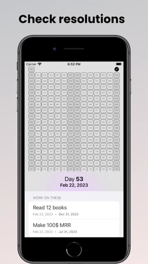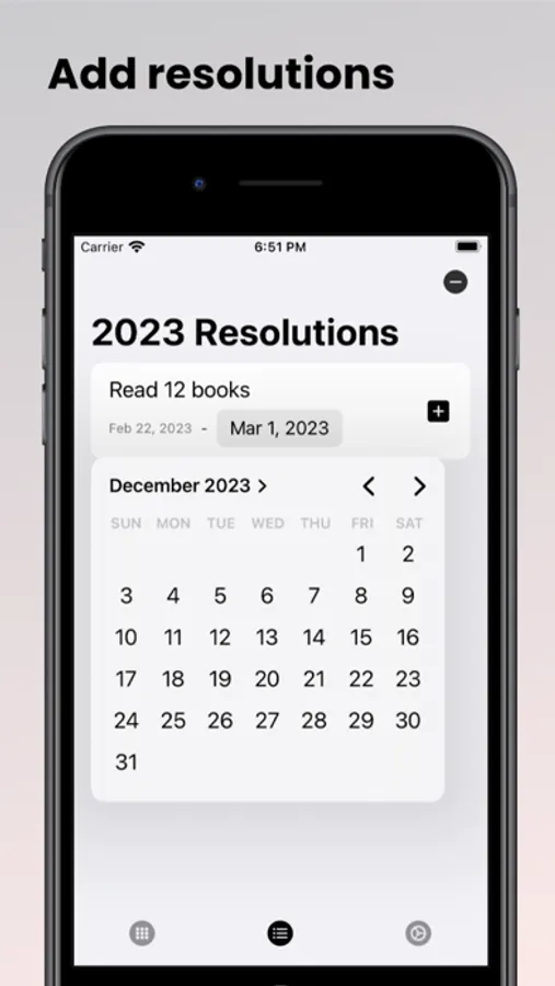 The app's intuitive interface allows you to easily tap on any day to see if you had made any resolutions that you can work on in that given day. This feature makes it easy to stay on top of your goals and ensure that you're making progress every day.