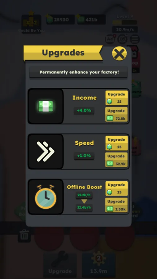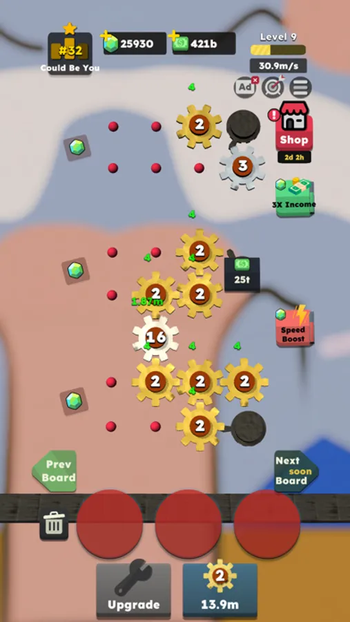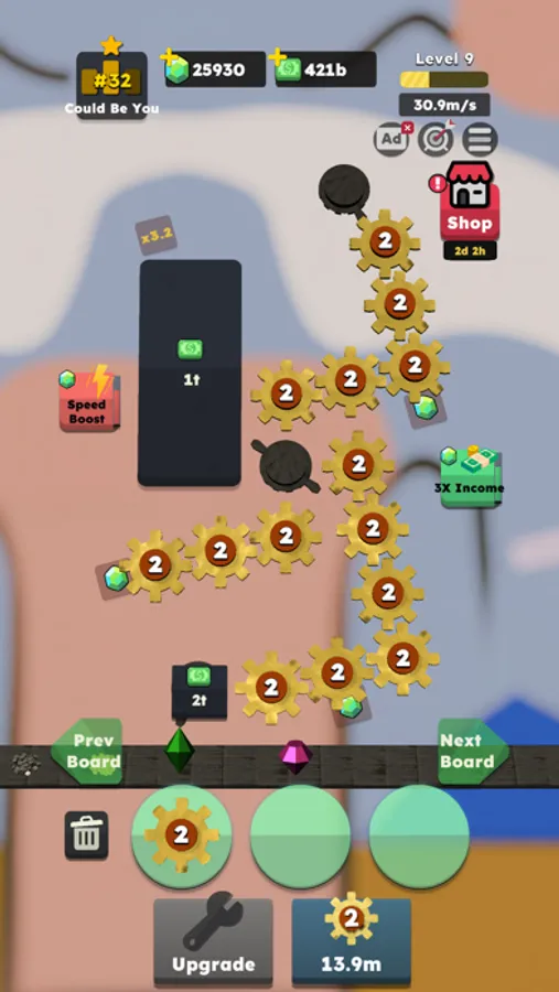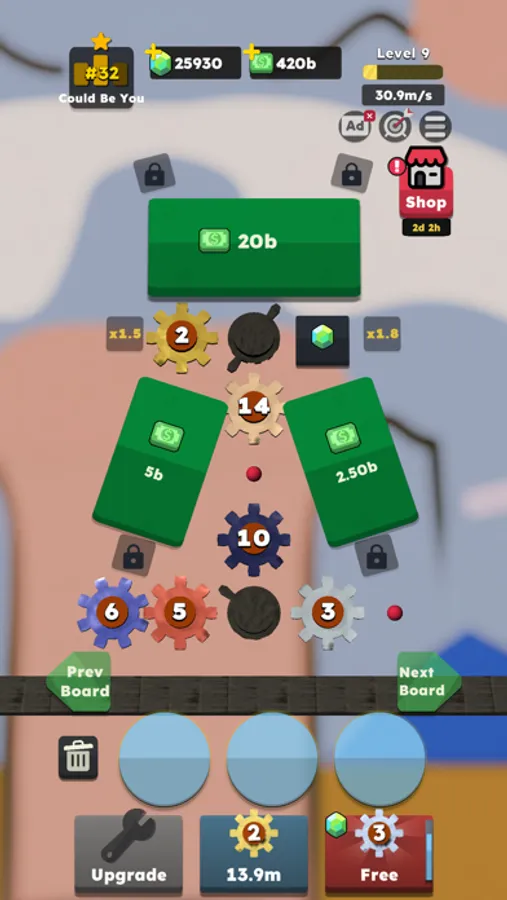 But wait, there’s more. You can also use money and gems to upgrade your gears and boost your income. How big can you grow your gear factory? How many gears can you fit on the board? How much money can you make in a day? Find out by competing with other players on the leaderboard. See who can become the ultimate gear master in Idle Gears. Download Idle Gears today and get ready to spin, click, and earn!