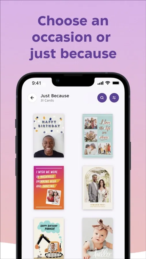 • Browse and personalize cards for all occasions, such as birthday, holidays, wedding, anniversary, sympathy and “just because”