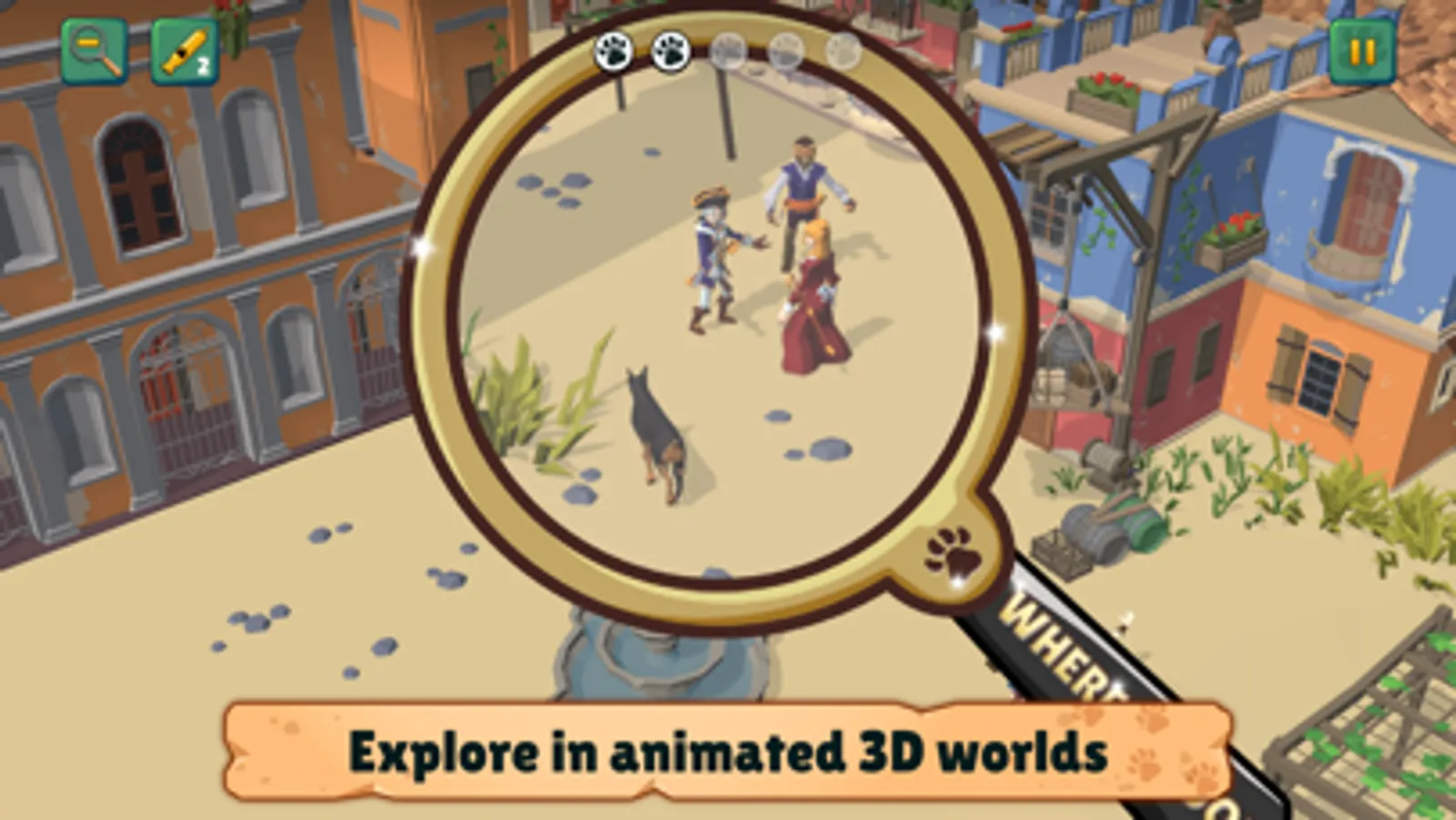 Take a closer look and discover all the wonderful details in the fun, animated 3D worlds. Is that a doggie in the window? Zoom in with the magnifying glass and find out! There are loads of levels to explore and with the sticker book to fill, you will have even more hidden objects to find! Join in on the search party fun and help bring the adorable furry friends home.