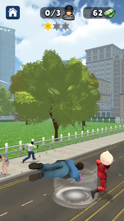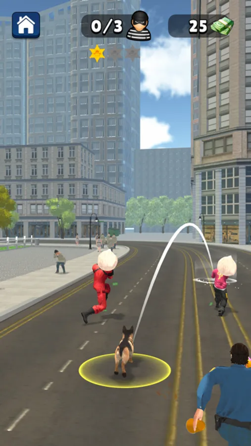 Manage a police squad, your goal is to catch all the criminals and thieves. Press your finger on the screen and pull back to start aiming and release to pin. Earn money, buy new police officers and improve them by uniting with each other with the help of merge.