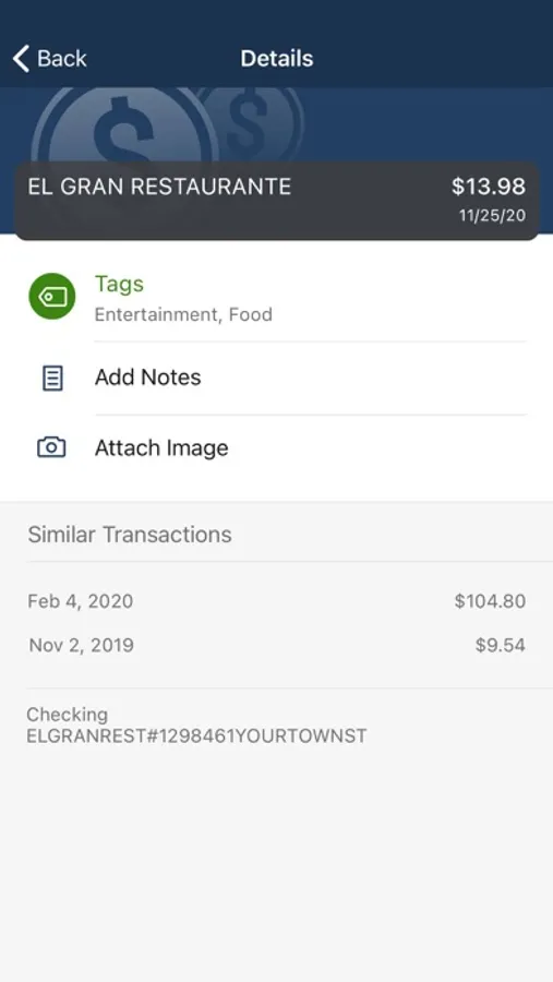 · Keep your transactions organized by allowing you to add tags, notes and photos of receipts and checks.