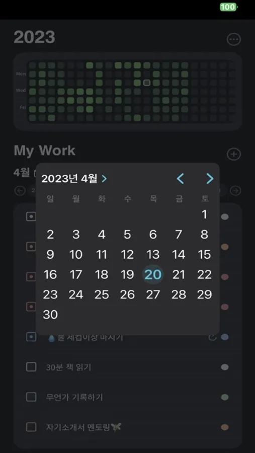 * 스와이프해서 한 주 넘기기