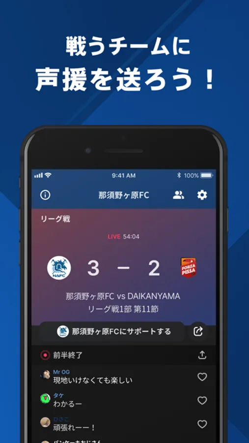 アプリを通じて、チームとの距離がぐっと近くなる。仲間が増える。チームをもっと好きになる!