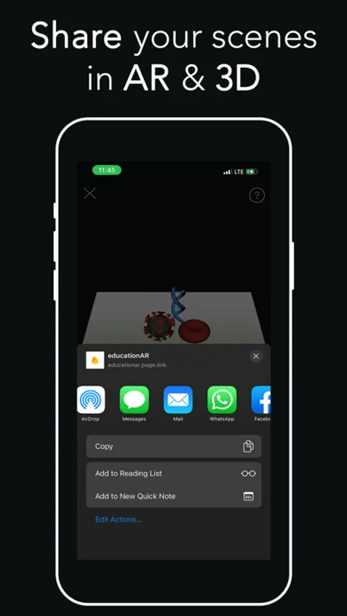When a user taps on the link, educationAR will launch and the scene will be presented in AR. If the user has not yet installed the app, the link will open the app store page where the user can download the app, once educationAR is launched the scene will be automatically presented.