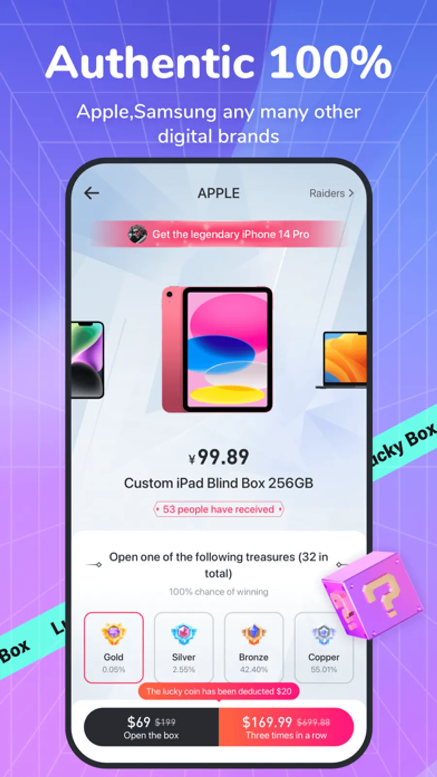 There are various mystery boxes in LuckyBox, including smart 3C products, household products, furniture and more. LuckyBox is the best choice for hipsters!