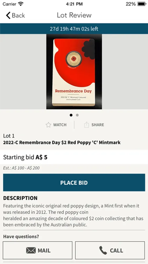 The Australian Specialty Coins app allows you to easily watch and participate in our auctions directly from your PC, phone or tablet.