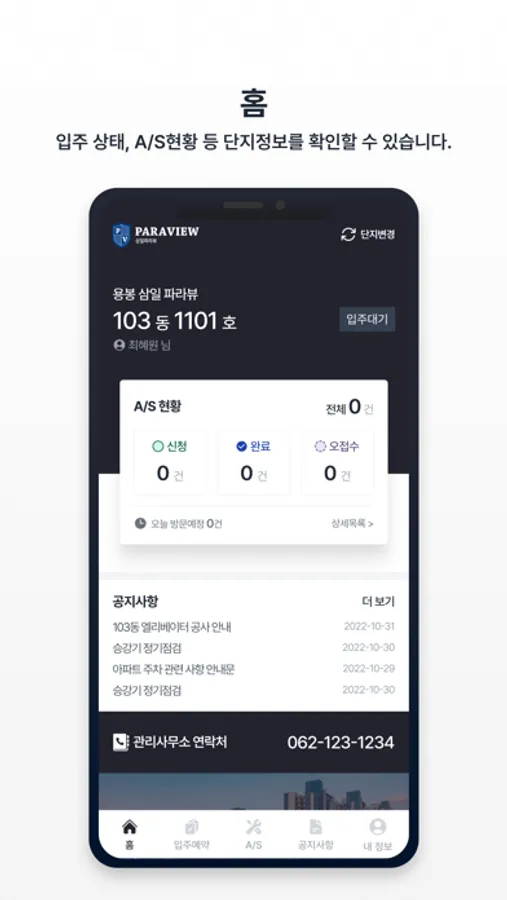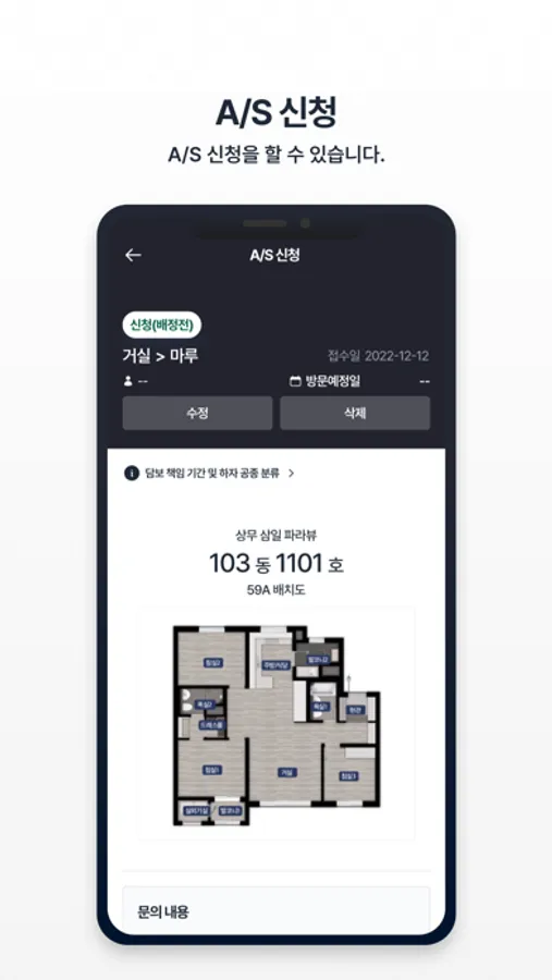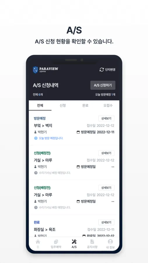 삼일파라뷰에 A/S를 쉽고 빠르게 해결해주는 앱