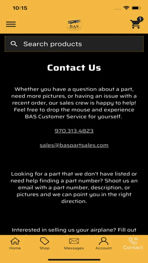 The BAS Part Sales app offers easy searching and quick ordering for new, used, salvaged, and new-old stock aviation parts for piston engine and turbine engine aircraft from brands such as Cessna, Learjet, Piper, Robinson, Cirrus, Mooney, Jetstream, Mitsubishi, Beechcraft, Beechjet, JetStar and many more. Easily search over 60,000 aviation parts for sale by part number, make, model, and more. Or browse our detailed catalog and always find the pictures, part numbers, and details you need to keep you out of the hangar and in the clouds. Shop our entire inventory and order aircraft parts directly from the app. BAS Part Sales is the internet’s best aircraft salvage yard with 2 locations in the US totaling more than 150,000 sq ft of warehouse and 180 acres of salvage yard covering nearly every make and model of general aviation, turbine, and business jet aircraft.