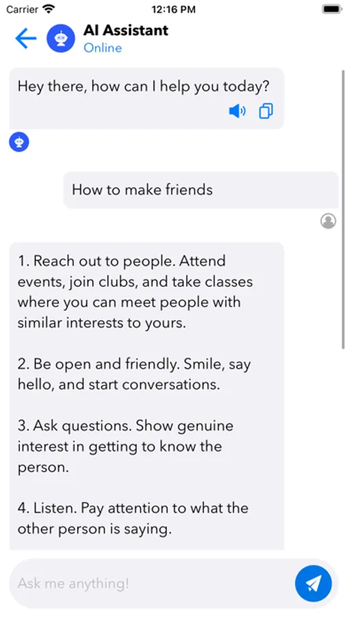 Introducing our Chat AI, your personal AI helper and companion. Built using the best AI technology on the market, this AI Assistant is capable of answering a variety of questions and completing multiple tasks.