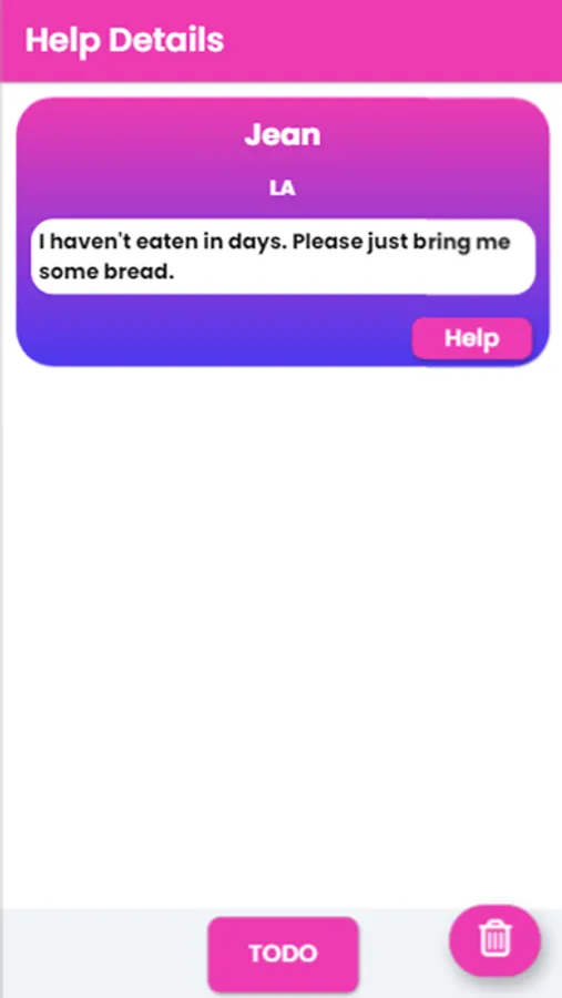 AssistMe! is an app for volunteers that will help you get connected with the homeless. Open up the app and you can see a quick TODO list of requests from the homeless that you can accept to help them with.